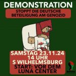 Demonstration , Stoppt die deutsche Beteiligung am Genozid , Samstag 23.11.24 , Hamburg