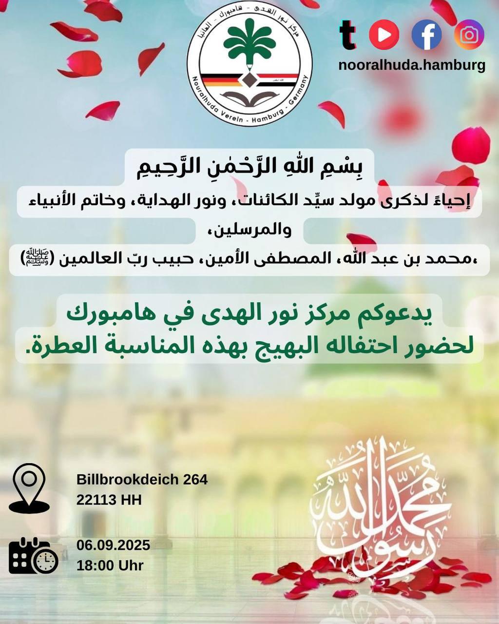 Aufruf zum Gedenken an den Rajab-Freitag – den Jahrestag der Einführung des Islam in den JemenAufruf zum Gedenken an den Rajab-Freitag – den Jahrestag der Einführung des Islam in den Jemen Im Namen Gottes, des Gnädigen, des Barmherzigen Gott, der Allmächtige, sagte: „Wenn Gottes Endsieg kommt und die Eroberung, und wenn du siehst, wie die Menschen in Scharen zum Gottes Religion übertreten“ Der Größte Geliebte, möge Gott ihn und seine